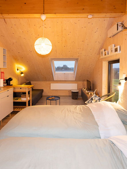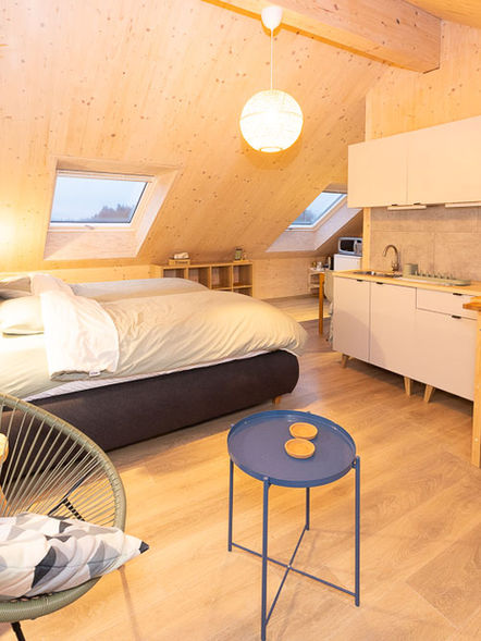 Driepersoonskamer (40m²) met eigen badkamer; gelegen op de tweede verdieping
