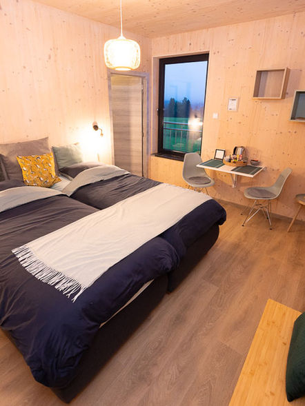 Tweepersoonskamer (16m²) met eigen badkamer; gelegen op de eerste verdieping