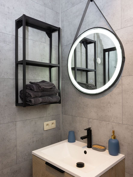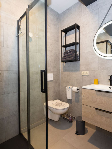 Badkamer met ruime inloopdouche, toilet en lavabo